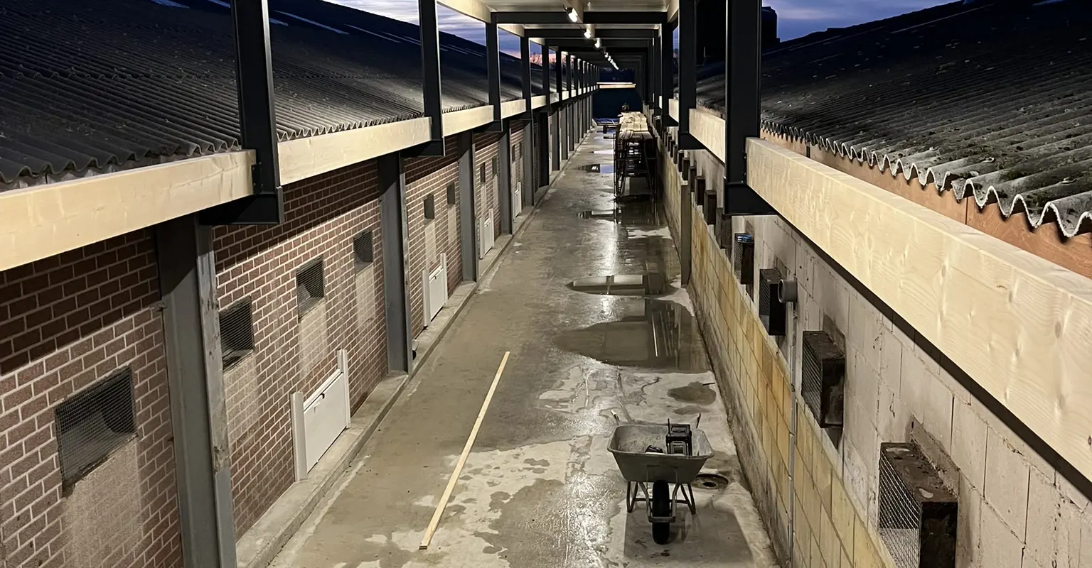 - Manuelle Arbeit zwischen den Ställen: Beim Bau eines Auslaufs zwischen zwei Ställen ist oft mehr Handarbeit erforderlich, da Maschinen nicht immer eingesetzt werden können.