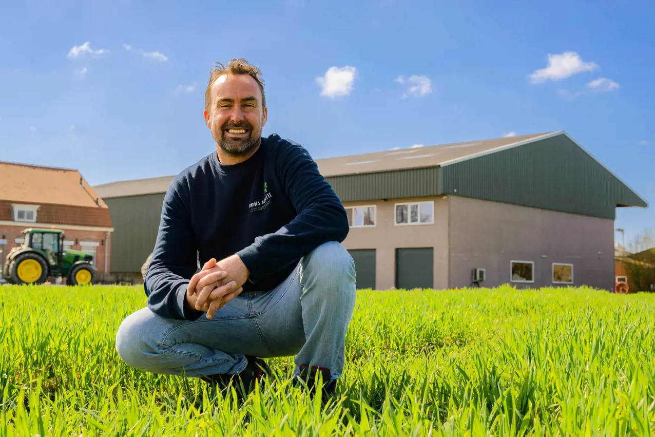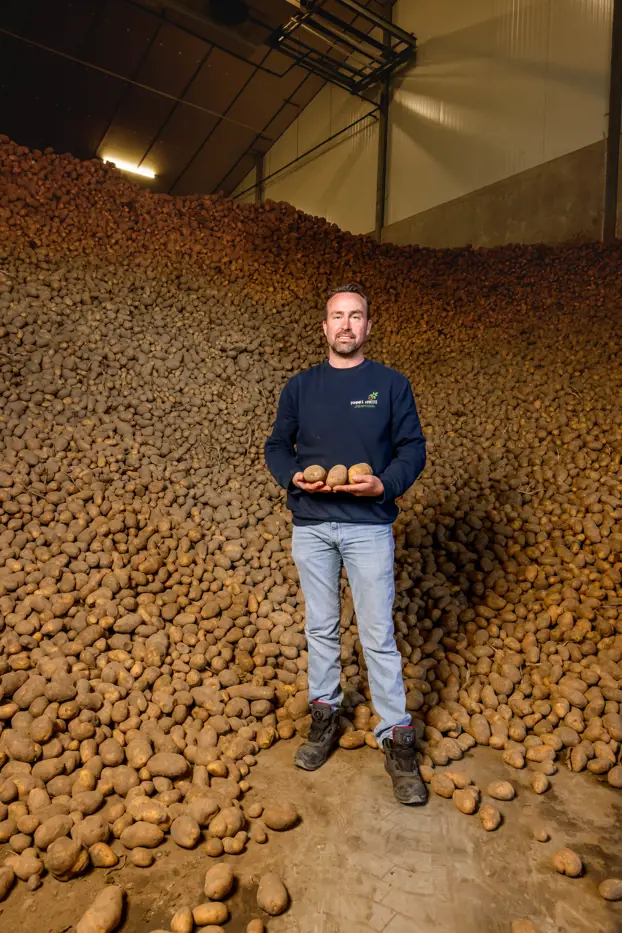 Marijn lebt gemeinsam mit seiner Frau Katrien und ihren drei Kindern im zeeländischen Sint-Kruis, nahe der belgischen Grenze, wo sie einen vielseitigen Landwirtschaftsbetrieb führen. Sie halten 75.000 1-Stern-Beter-Leven-Broiler, bauen Kartoffeln und Getreide an und betreiben seit einigen Jahren eine eigene Pommeslinie. „Ich denke, ich habe einen der schönsten Kreisläufe, die man haben kann“, sagt Marijn stolz. „Mein Getreide geht an die Hühner, der Mist der Hühner an die Kartoffeln, und diese Kartoffeln werden zu Pommes. Schöner kann es kaum sein.“