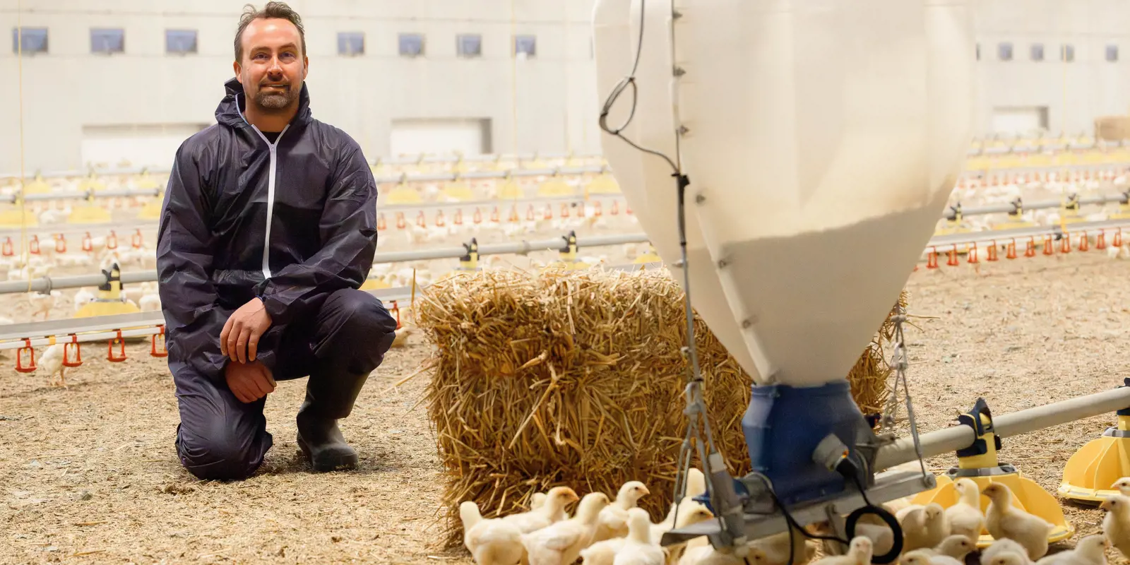 Nachhaltigkeit spielt eine zentrale Rolle in seinem Betrieb. „Wir haben drei nachhaltige Ställe mit fast 1.000 Solarmodulen, heizen komplett mit Holzpellets, und haben keinen Gasanschluss mehr.“ Auch in Sachen Klimasteuerung ist der Betrieb gut ausgestattet. „Wir haben drei Wärmetauscher, die für ein optimales Stallklima sorgen, was für die Küken sehr angenehm ist“, erklärt Marijn.