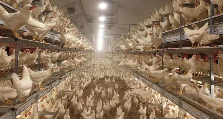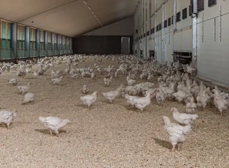 - In Broilerställen besteht normalerweise genügend Abstand, da die Tiere am Boden gehalten werden.